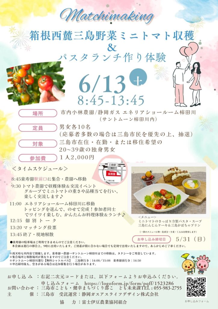 【宣伝】「収穫体験&クッキング体験縁結びイベント」の開催案内(三島市)
